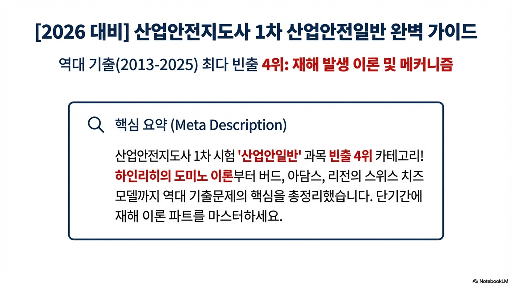 | 2026 산업안전지도사 1차 합격 전략: 빈출 5위 재해조사 및 사례연구 완벽 정리 (0) | 2026.03.21 |